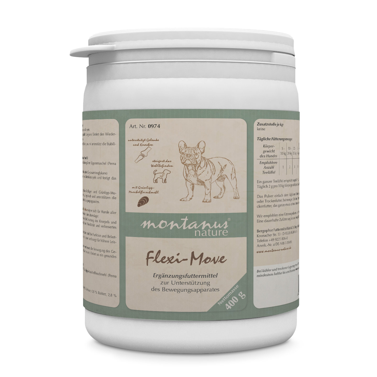 montanus® nature Flexi-Move ist ein Pulver zur Unterstützung der Gelenkgesundheit bei Hunden.