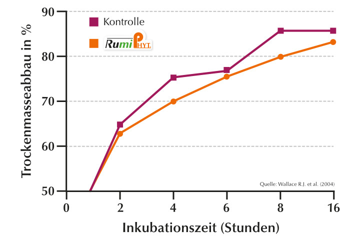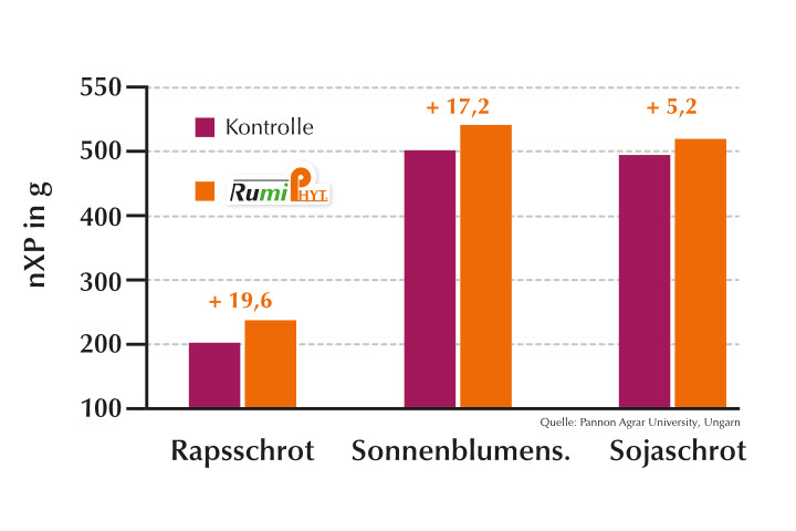 RumiPhyt® reduziert den Proteinabbau im Pansen und steigert die Menge an nutzbarem Protein im Dünndarm (nXP).