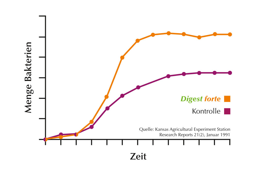 Digest forte regt die natürlich im Pansen vorkommende rohfaserabbauende Pilzpopulation zu stärkerem Wachstum und gesteigerter Stoffwechselaktivität an.